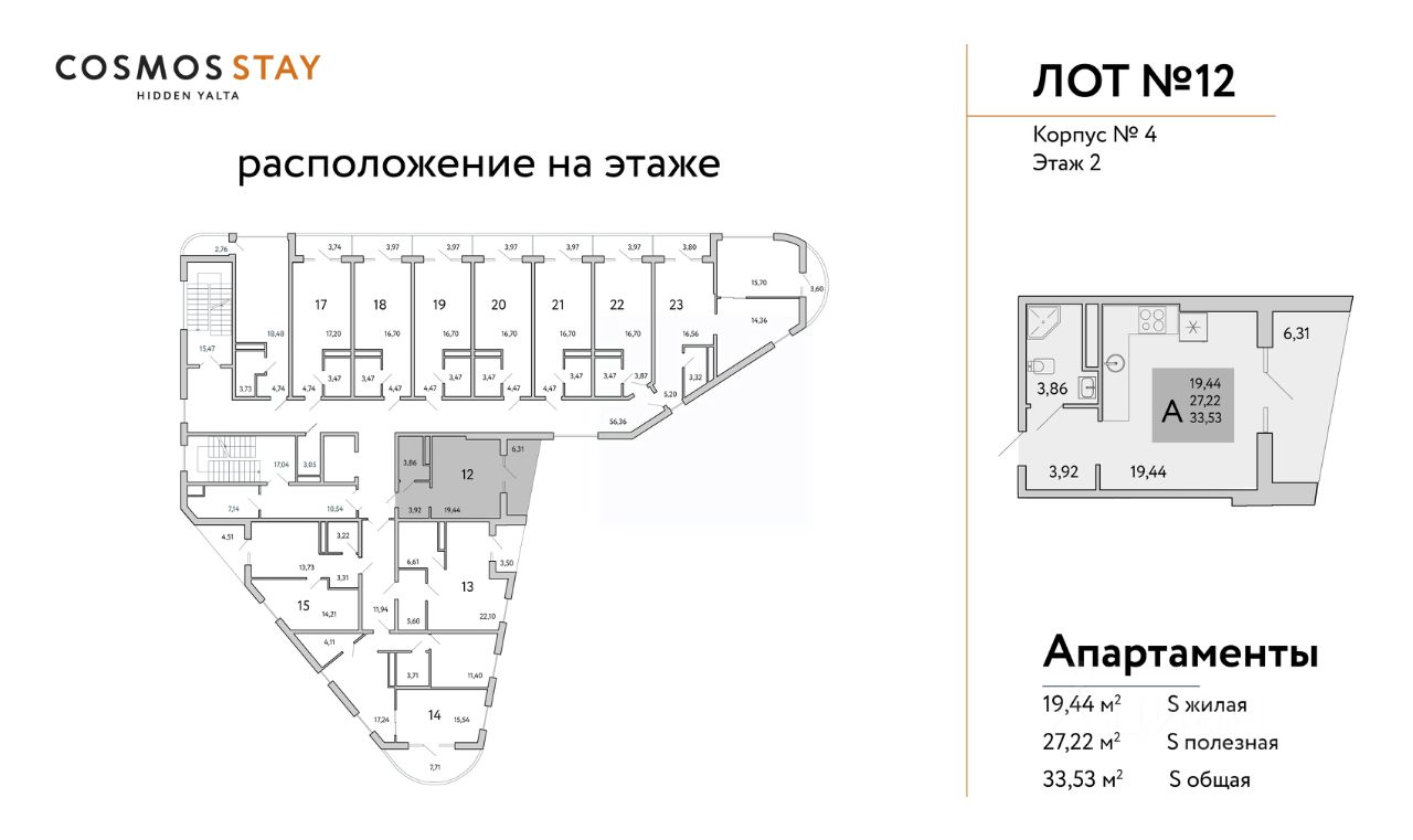 ГОТОВЫЙ БИЗНЕС ПОД КЛЮЧ ДОХОД ОТ 1 500 000 руб. с первого года деятельности отеля. Продаются апартаменты от Застройщика в строящемся комплексе COSMOS STAY HIDDEN YALTA, под управлением ведущего отельера в России COSMOS HOTEL GROUP (COSMOS HOTEL GROUP это Аккредитованная Управляющая компания международных гостиничных операторов). ИНВЕСТИЦИОННЫЕ ПРЕИМУЩЕСТВА КОМПЛЕКСА: - Первый COSMOS STAY в Ялте- Гостиничный номер с ремонтом, мебелью и техникой - Управление номерным фондом командой COSMOS- Прозрачность управления - Гарантированная круглогодичная загрузка комплекса - Глубокое знание и владение бизнесом - БИЗНЕС-МОДЕЛЬ Будущего: круглогодичный и пассивный доход - Среднегодовая доходность 22 % О КОМПЛЕКСЕ COSMOS STAY HIDDEN YALTA это комплекс апартаментов из 5 корпусов для отдыха с собственной развитой инфраструктурой. Находится в Ялте у подножья горы Могаби на южном берегу Крыма, вблизи с живописным горнолесным заповедником, у подножья горы Ай-Петри. Из апартаментов комплекса открываются завораживающие виды на горные вершины и Черное море. ЭТАЖНОСТЬ КОРПУСОВ: до 9 этажей Срок сдачи объекта: IV-кв. 2026г. Квадратура апартаментов: от 25м2 до 80,4 м2. Апартаменты с отделкой и мебелью. ИНФРАСТРУКТУРА КОМПЛЕКСА - Лаунж-зоны - Спа-центр - Детские пространства и площадки для спорта - Всесезонный бассейн - Пространства для медитаций и занятий йогой - Ресторан и Лобби - Супермаркеты и аптека - Консьерж-сервис полного цикла обслуживания с управлением - Экотропы для прогулок - Канатная дорога в 20 минутах КОНЦЕПЦИЯ АПАРТ-КОМПЛЕКСА Предлагает уникальный формат отдыха в стиле Retreat. Здесь созданы идеальные условия комфортного отдыха, заботы о вашем ментальном и физическом здоровье, вдали от городской суеты, в окружении векового леса и природы. Здесь вы найдете всё необходимое для восстановления и перезагрузки. Рассрочка от застройщика, подробности уточняйте в Отделе продаж. Строительство ведется при проектном финансировании СБЕРБАНКА, согласно ФЗ-214. Продажа через эскроу-счета без комиссий и переплат.