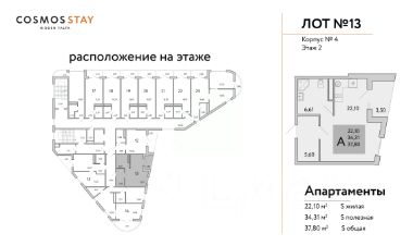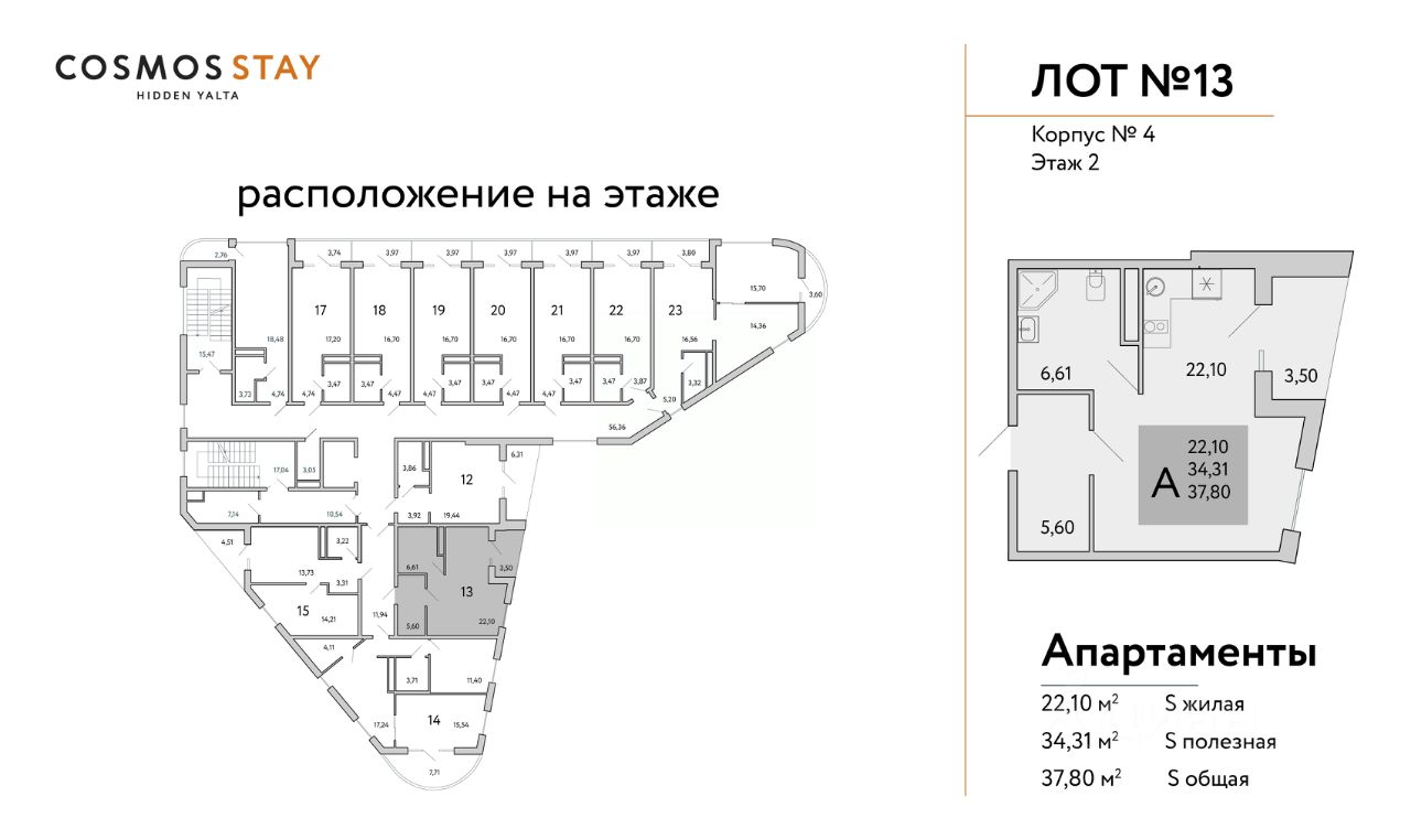 Квадратура апартаментов: от 25м2 до 80,4 м2.