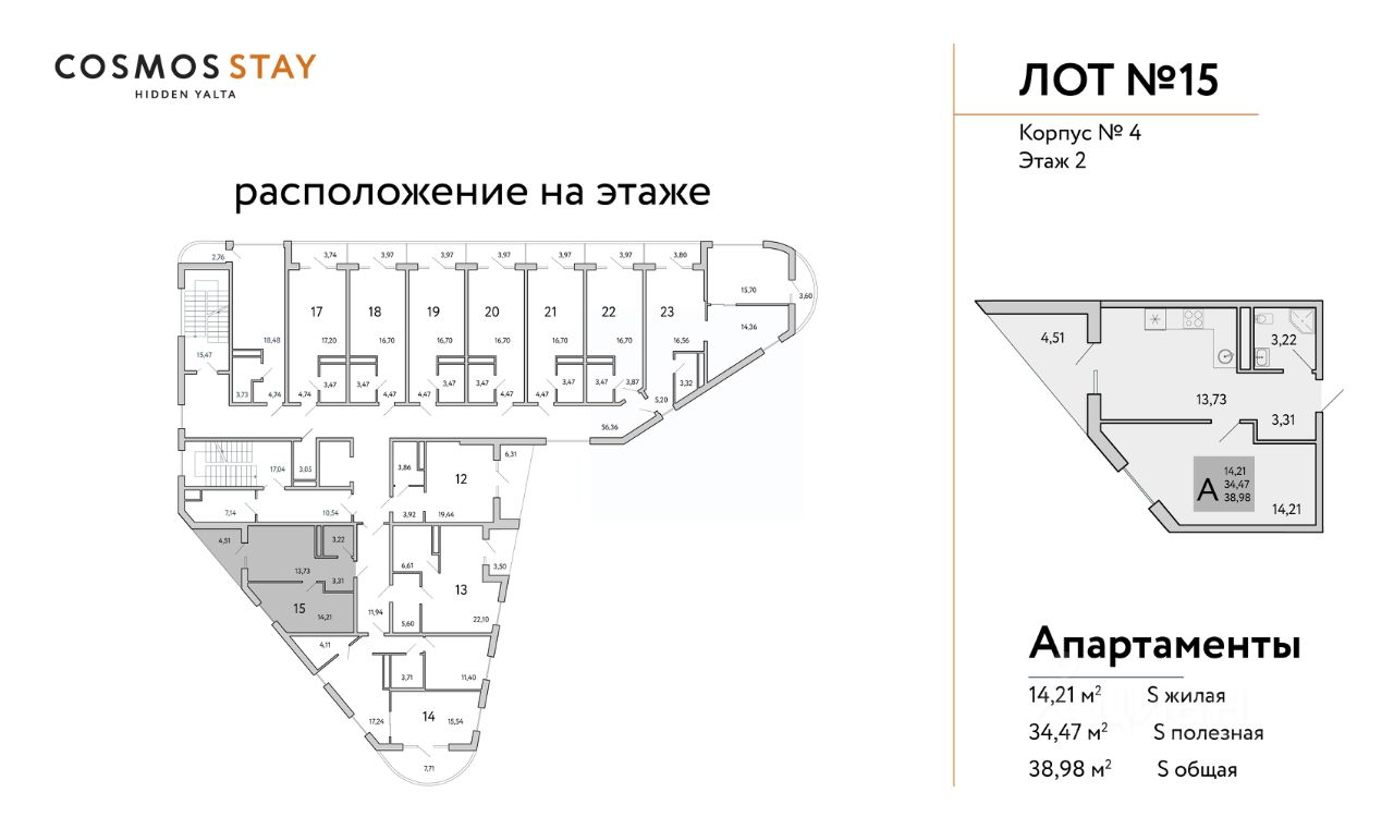 ГОТОВЫЙ БИЗНЕС ПОД КЛЮЧ ДОХОД ОТ 1 500 000 руб. с первого года деятельности отеля. Продаются апартаменты от Застройщика в строящемся комплексе COSMOS STAY HIDDEN YALTA, под управлением ведущего отельера в России COSMOS HOTEL GROUP (COSMOS HOTEL GROUP это Аккредитованная Управляющая компания международных гостиничных операторов). ИНВЕСТИЦИОННЫЕ ПРЕИМУЩЕСТВА КОМПЛЕКСА: - Первый COSMOS STAY в Ялте- Гостиничный номер с ремонтом, мебелью и техникой - Управление номерным фондом командой COSMOS- Прозрачность управления - Гарантированная круглогодичная загрузка комплекса - Глубокое знание и владение бизнесом - БИЗНЕС-МОДЕЛЬ Будущего: круглогодичный и пассивный доход - Среднегодовая доходность 22 % О КОМПЛЕКСЕ COSMOS STAY HIDDEN YALTA это комплекс апартаментов из 5 корпусов для отдыха с собственной развитой инфраструктурой. Находится в Ялте у подножья горы Могаби на южном берегу Крыма, вблизи с живописным горнолесным заповедником, у подножья горы Ай-Петри. Из апартаментов комплекса открываются завораживающие виды на горные вершины и Черное море. ЭТАЖНОСТЬ КОРПУСОВ: до 9 этажей Срок сдачи объекта: IV-кв. 2026г. Квадратура апартаментов: от 25м2 до 80,4 м2. Апартаменты с отделкой и мебелью. ИНФРАСТРУКТУРА КОМПЛЕКСА - Лаунж-зоны - Спа-центр - Детские пространства и площадки для спорта - Всесезонный бассейн - Пространства для медитаций и занятий йогой - Ресторан и Лобби - Супермаркеты и аптека - Консьерж-сервис полного цикла обслуживания с управлением - Экотропы для прогулок - Канатная дорога в 20 минутах КОНЦЕПЦИЯ АПАРТ-КОМПЛЕКСА Предлагает уникальный формат отдыха в стиле Retreat. Здесь созданы идеальные условия комфортного отдыха, заботы о вашем ментальном и физическом здоровье, вдали от городской суеты, в окружении векового леса и природы. Здесь вы найдете всё необходимое для восстановления и перезагрузки. Рассрочка от застройщика, подробности уточняйте в Отделе продаж. Строительство ведется при проектном финансировании СБЕРБАНКА, согласно ФЗ-214. Продажа через эскроу-счета без комиссий и переплат.