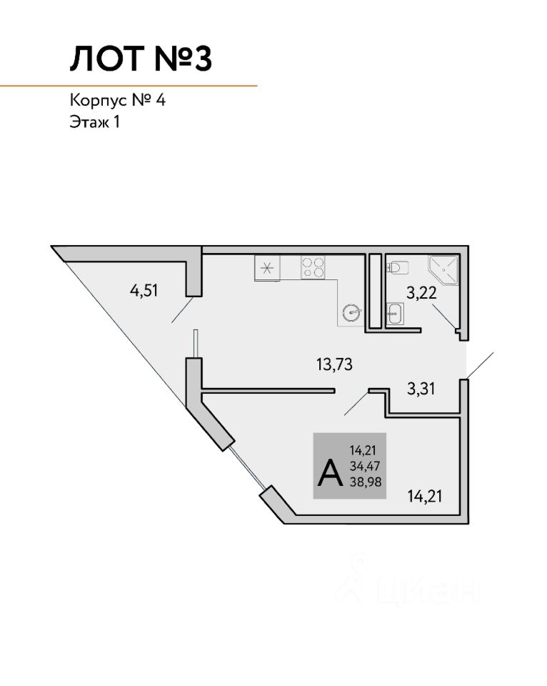 Общая площадь38,98 м²