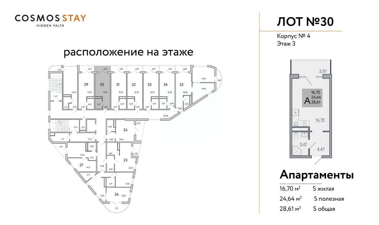 ГОТОВЫЙ БИЗНЕС ПОД КЛЮЧ ДОХОД ОТ 1 500 000 руб. с первого года деятельности отеля. Продаются апартаменты от Застройщика в строящемся комплексе COSMOS STAY HIDDEN YALTA, под управлением ведущего отельера в России COSMOS HOTEL GROUP (COSMOS HOTEL GROUP это Аккредитованная Управляющая компания международных гостиничных операторов). ИНВЕСТИЦИОННЫЕ ПРЕИМУЩЕСТВА КОМПЛЕКСА: - Первый COSMOS STAY в Ялте- Гостиничный номер с ремонтом, мебелью и техникой - Управление номерным фондом командой COSMOS- Прозрачность управления - Гарантированная круглогодичная загрузка комплекса - Глубокое знание и владение бизнесом - БИЗНЕС-МОДЕЛЬ Будущего: круглогодичный и пассивный доход - Среднегодовая доходность 22 % О КОМПЛЕКСЕ COSMOS STAY HIDDEN YALTA это комплекс апартаментов из 5 корпусов для отдыха с собственной развитой инфраструктурой. Находится в Ялте у подножья горы Могаби на южном берегу Крыма, вблизи с живописным горнолесным заповедником, у подножья горы Ай-Петри. Из апартаментов комплекса открываются завораживающие виды на горные вершины и Черное море. ЭТАЖНОСТЬ КОРПУСОВ: до 9 этажей Срок сдачи объекта: IV-кв. 2026г. Квадратура апартаментов: от 25м2 до 80,4 м2. Апартаменты с отделкой и мебелью. ИНФРАСТРУКТУРА КОМПЛЕКСА - Лаунж-зоны - Спа-центр - Детские пространства и площадки для спорта - Всесезонный бассейн - Пространства для медитаций и занятий йогой - Ресторан и Лобби - Супермаркеты и аптека - Консьерж-сервис полного цикла обслуживания с управлением - Экотропы для прогулок - Канатная дорога в 20 минутах КОНЦЕПЦИЯ АПАРТ-КОМПЛЕКСА Предлагает уникальный формат отдыха в стиле Retreat. Здесь созданы идеальные условия комфортного отдыха, заботы о вашем ментальном и физическом здоровье, вдали от городской суеты, в окружении векового леса и природы. Здесь вы найдете всё необходимое для восстановления и перезагрузки. Рассрочка от застройщика, подробности уточняйте в Отделе продаж. Строительство ведется при проектном финансировании СБЕРБАНКА, согласно ФЗ-214. Продажа через эскроу-счета без комиссий и переплат.