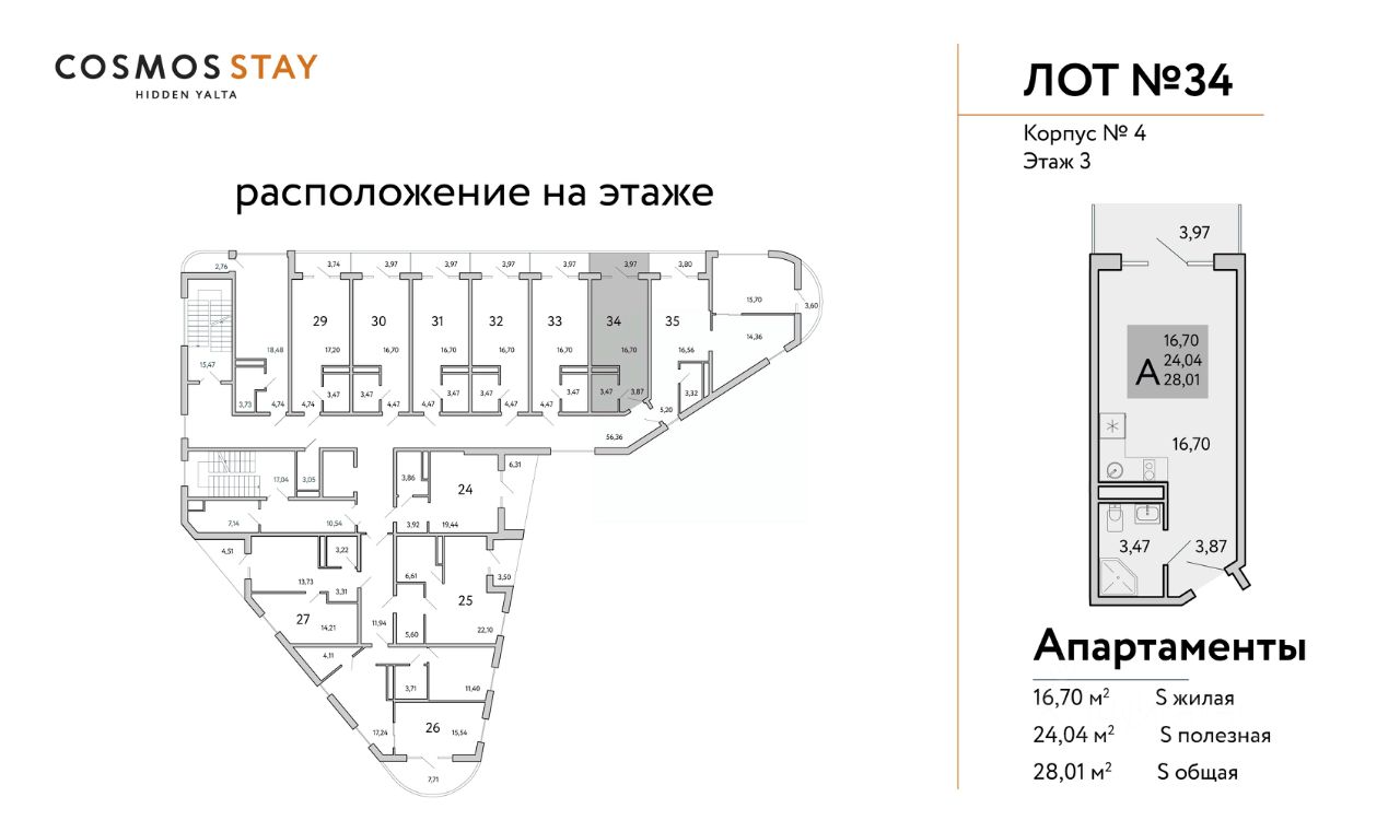 Квадратура апартаментов: от 25м2 до 80,4 м2.