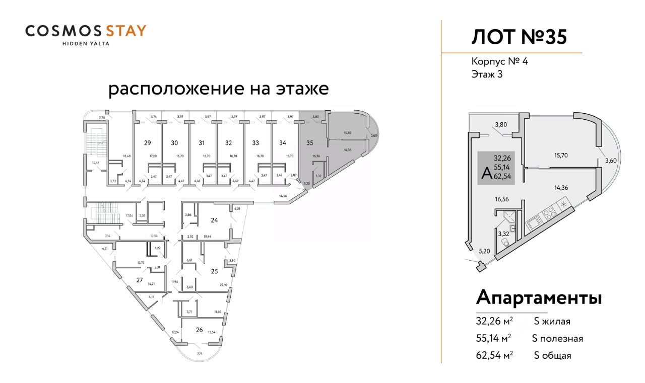 ГОТОВЫЙ БИЗНЕС ПОД КЛЮЧ ДОХОД ОТ 1 500 000 руб. с первого года деятельности отеля. Продаются апартаменты от Застройщика в строящемся комплексе COSMOS STAY HIDDEN YALTA, под управлением ведущего отельера в России COSMOS HOTEL GROUP (COSMOS HOTEL GROUP это Аккредитованная Управляющая компания международных гостиничных операторов). ИНВЕСТИЦИОННЫЕ ПРЕИМУЩЕСТВА КОМПЛЕКСА: - Первый COSMOS STAY в Ялте- Гостиничный номер с ремонтом, мебелью и техникой - Управление номерным фондом командой COSMOS- Прозрачность управления - Гарантированная круглогодичная загрузка комплекса - Глубокое знание и владение бизнесом - БИЗНЕС-МОДЕЛЬ Будущего: круглогодичный и пассивный доход - Среднегодовая доходность 22 % О КОМПЛЕКСЕ COSMOS STAY HIDDEN YALTA это комплекс апартаментов из 5 корпусов для отдыха с собственной развитой инфраструктурой. Находится в Ялте у подножья горы Могаби на южном берегу Крыма, вблизи с живописным горнолесным заповедником, у подножья горы Ай-Петри. Из апартаментов комплекса открываются завораживающие виды на горные вершины и Черное море. ЭТАЖНОСТЬ КОРПУСОВ: до 9 этажей Срок сдачи объекта: IV-кв. 2026г. Квадратура апартаментов: от 25м2 до 80,4 м2. Апартаменты с отделкой и мебелью. ИНФРАСТРУКТУРА КОМПЛЕКСА - Лаунж-зоны - Спа-центр - Детские пространства и площадки для спорта - Всесезонный бассейн - Пространства для медитаций и занятий йогой - Ресторан и Лобби - Супермаркеты и аптека - Консьерж-сервис полного цикла обслуживания с управлением - Экотропы для прогулок - Канатная дорога в 20 минутах КОНЦЕПЦИЯ АПАРТ-КОМПЛЕКСА Предлагает уникальный формат отдыха в стиле Retreat. Здесь созданы идеальные условия комфортного отдыха, заботы о вашем ментальном и физическом здоровье, вдали от городской суеты, в окружении векового леса и природы. Здесь вы найдете всё необходимое для восстановления и перезагрузки. Рассрочка от застройщика, подробности уточняйте в Отделе продаж. Строительство ведется при проектном финансировании СБЕРБАНКА, согласно ФЗ-214. Продажа через эскроу-счета без комиссий и переплат.