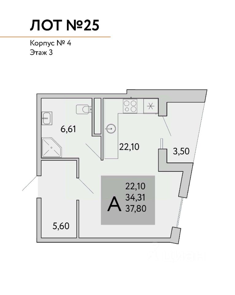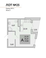 Квадратура апартаментов: от 25м2 до 80,4 м2.