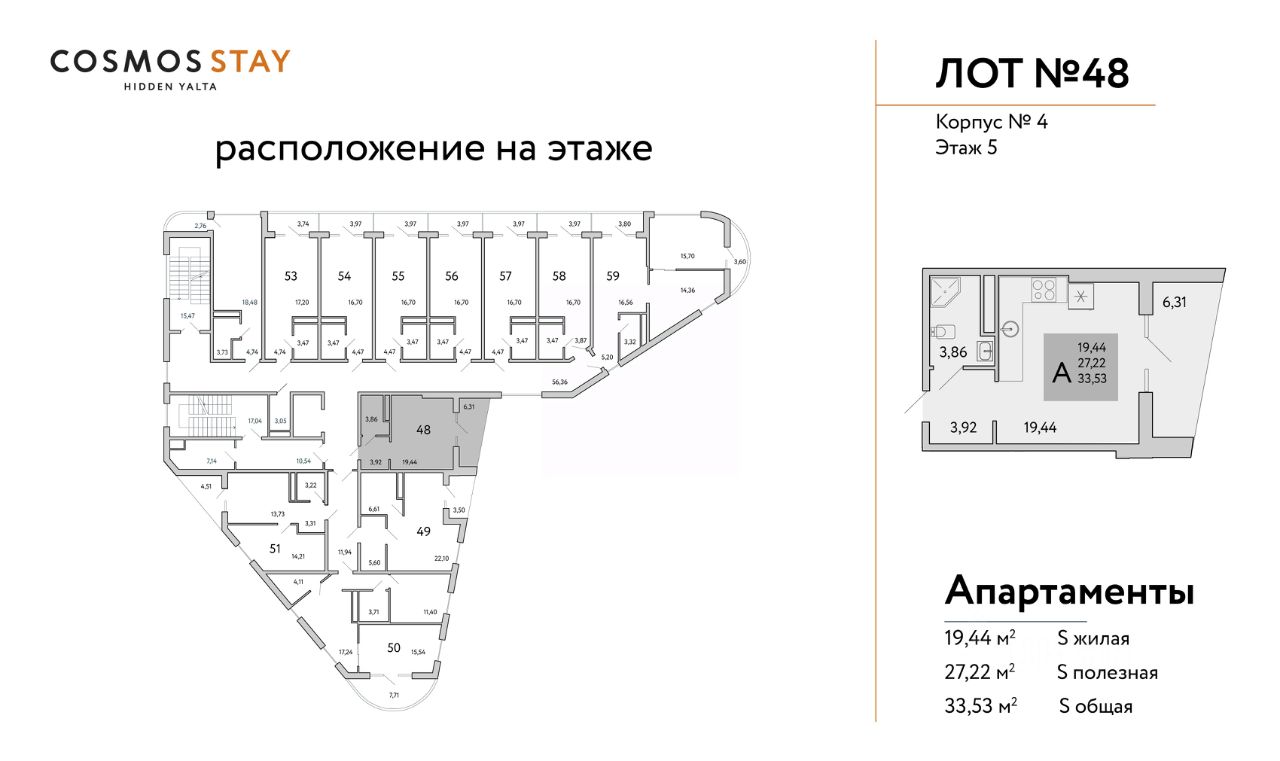 COSMOS STAY HIDDEN YALTA это комплекс апартаментов из 5 корпусов для отдыха с собственной развитой инфраструктурой. Находится в Ялте у подножья горы Могаби на южном берегу Крыма, вблизи с живописным горнолесным заповедником, у подножья горы Ай-Петри. Из апартаментов комплекса открываются завораживающие виды на горные вершины и Черное море.