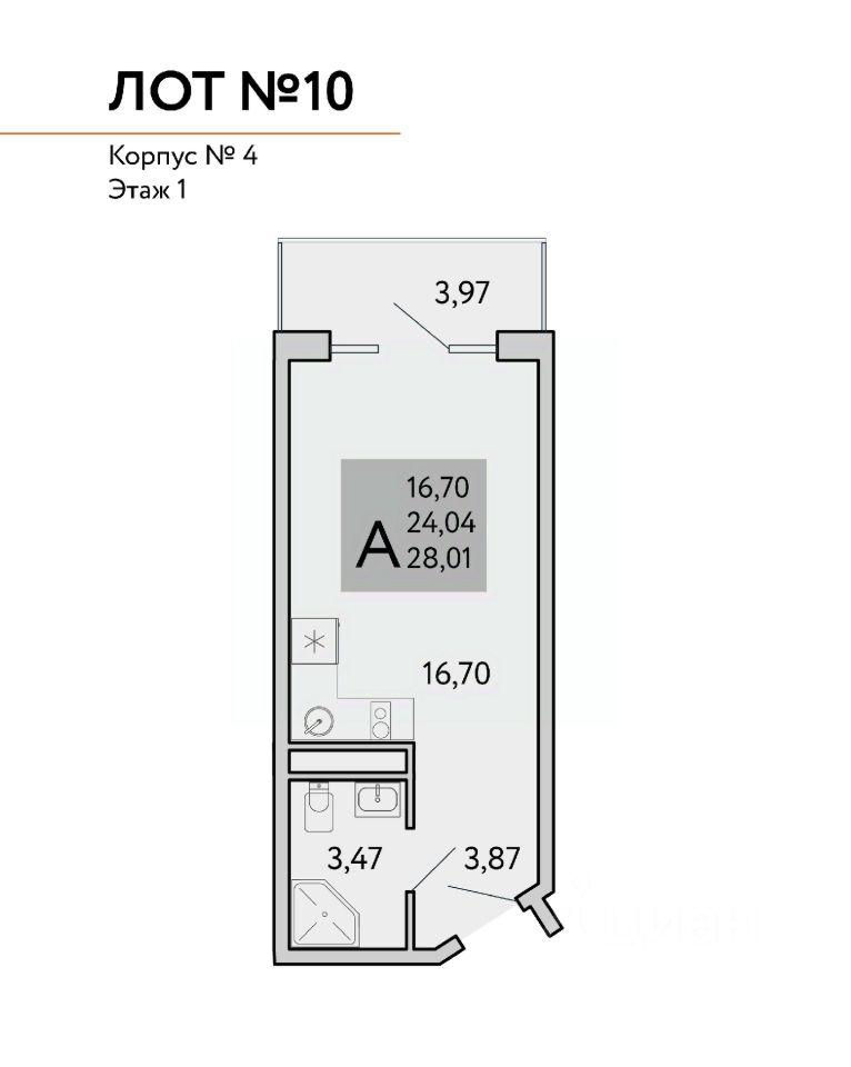 Квадратура апартаментов: от 25м2 до 80,4 м2.