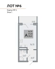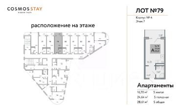 Квадратура апартаментов: от 25м2 до 80,4 м2.