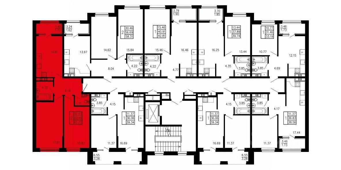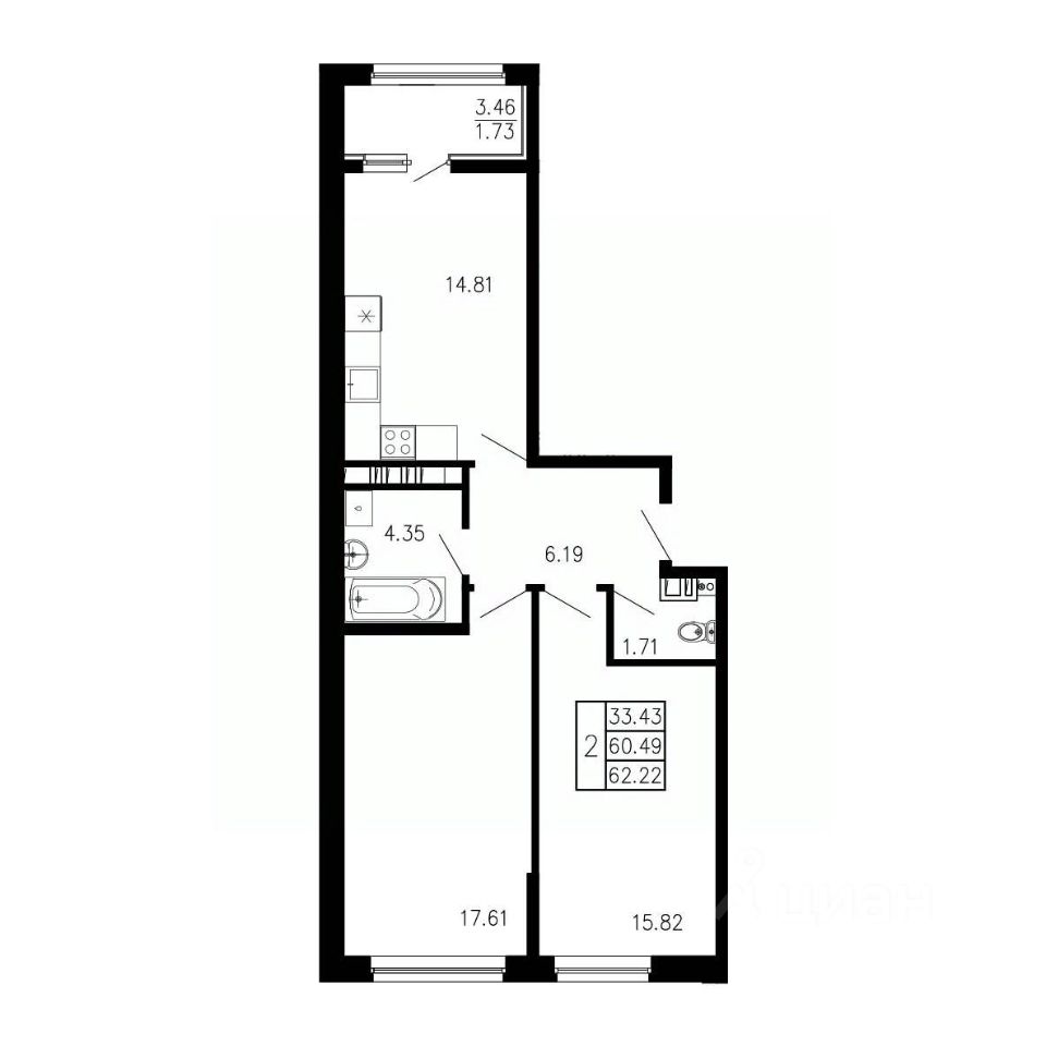 Общая площадь62,22 м²