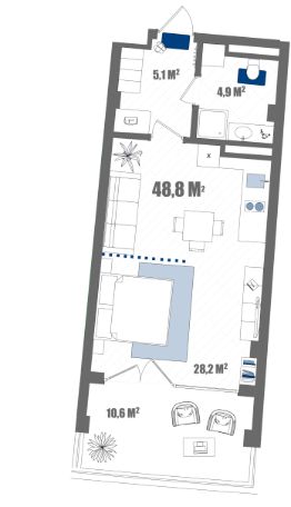 Продаются 1-комнатные апартаменты в сданном доме (корпус А), срок сдачи: III-кв. 2024, общей площадью 48.8 кв.м., на 6 этаже.