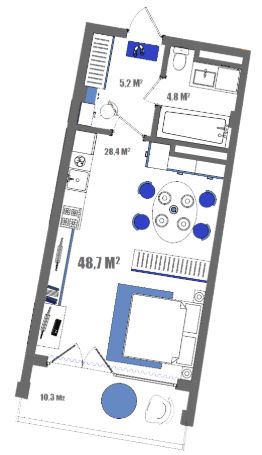Продаются 1-комнатные апартаменты в сданном доме (корпус А), срок сдачи: III-кв. 2024, общей площадью 48.7 кв.м., на 6 этаже.