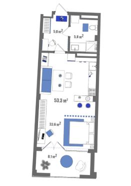 Продаются 1-комнатные апартаменты в сданном доме (корпус А), срок сдачи: III-кв. 2024, общей площадью 53.3 кв.м., на 7 этаже.