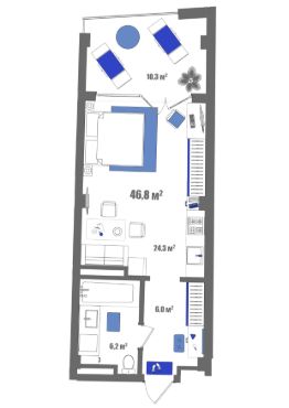 Продаются 1-комнатные апартаменты в сданном доме (корпус А), срок сдачи: III-кв. 2024, общей площадью 46.8 кв.м., на 7 этаже.