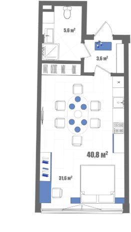 Продаются 1-комнатные апартаменты в сданном доме (корпус А), срок сдачи: III-кв. 2024, общей площадью 40.8 кв.м., на 1 этаже.