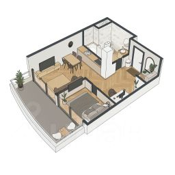 Общая площадь предложения 52 м2. Предполагается планирование в 2к апартамент, но на данный момент помещение без зонирования, поэтому вы сможете изолировать комнаты по своему желанию.