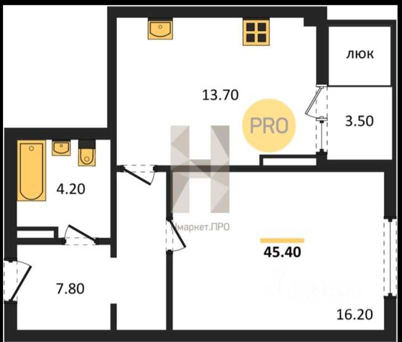 Квартира на 6 этаже 16 этажного дома, с общей площадью 46 м.кв. большой кухней 13 м.кв. с выходом на лоджию с панорамными окнами и прекрасным видом на город. Квартира в черновой отделке.