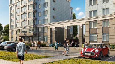 Жилой квартал состоит из 3-х многоквартирных домов П-образной формы, в каждом из которых предусмотрен собственный паркинг.