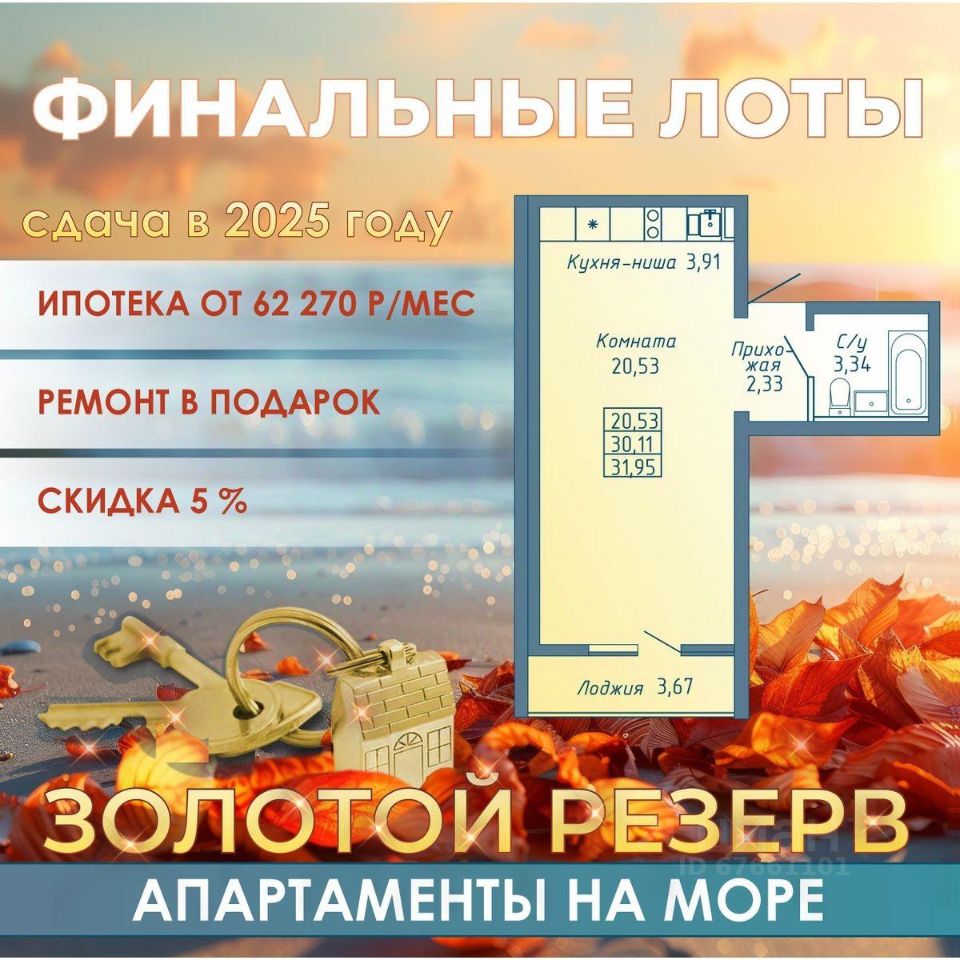 Продаются 1-комнатные апартаменты в строящемся доме (Строение 1), срок сдачи: IV-кв. 2025, общей площадью 31.95 кв.м., на 3 этаже. "Бирюзовая бухта" - трехсекционный восьмиэтажный апартаментный комплекс с развитой инфраструктурой, расположенный в экологически чистом районе города, в 15-ти минутах ходьбы до благоустроенной набережной и оборудованного, бесплатного песчаного пляжа.
