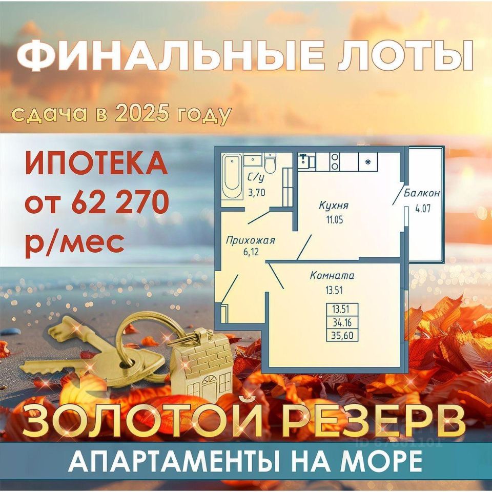 Продаются 1-комнатные апартаменты в строящемся доме (Строение 1), срок сдачи: IV-кв. 2025, общей площадью 35.6 кв.м., на 1 этаже. "Бирюзовая бухта" - трехсекционный восьмиэтажный апартаментный комплекс с развитой инфраструктурой, расположенный в экологически чистом районе города, в 15-ти минутах ходьбы до благоустроенной набережной и оборудованного, бесплатного песчаного пляжа.
