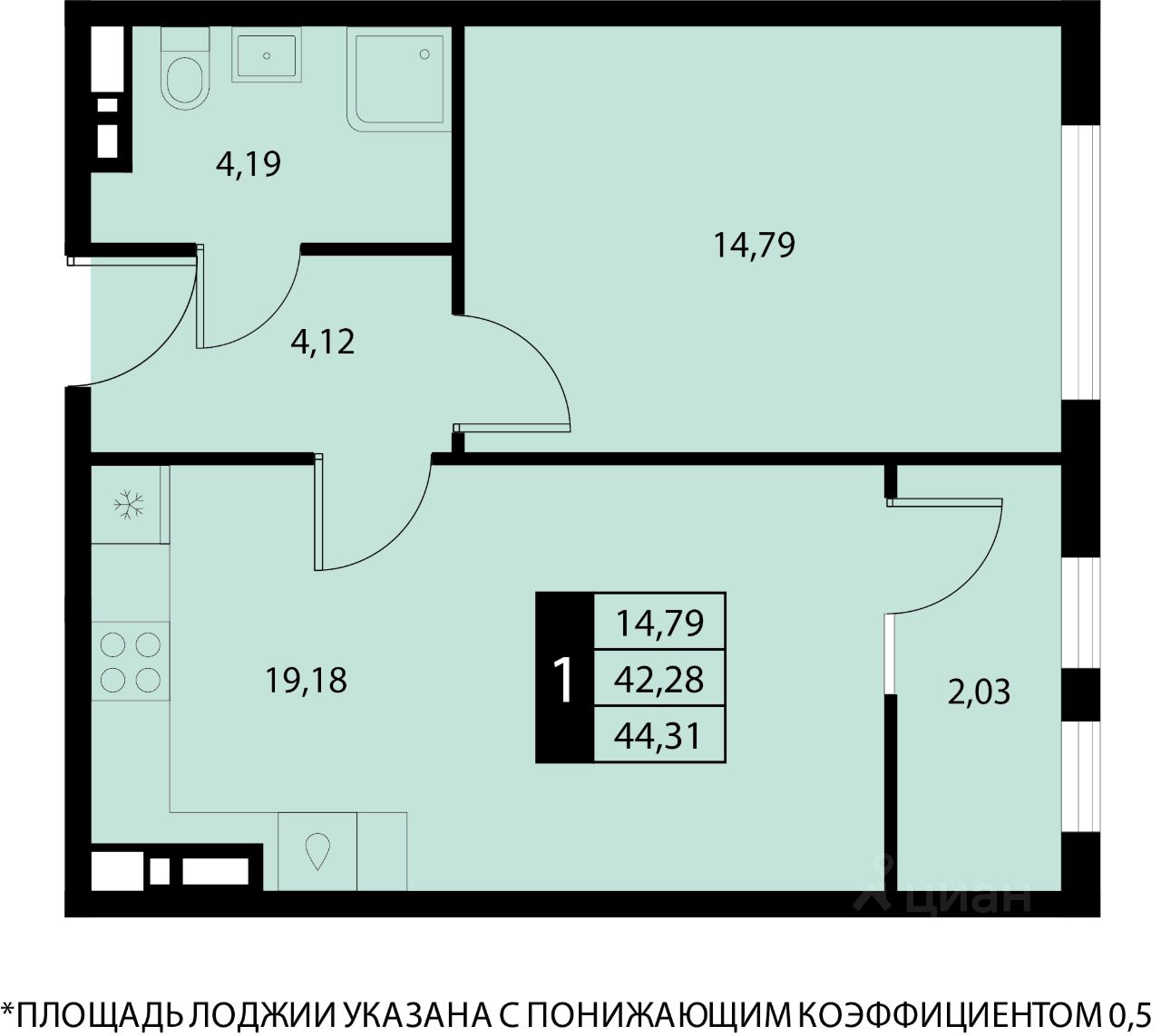 44,31 м²