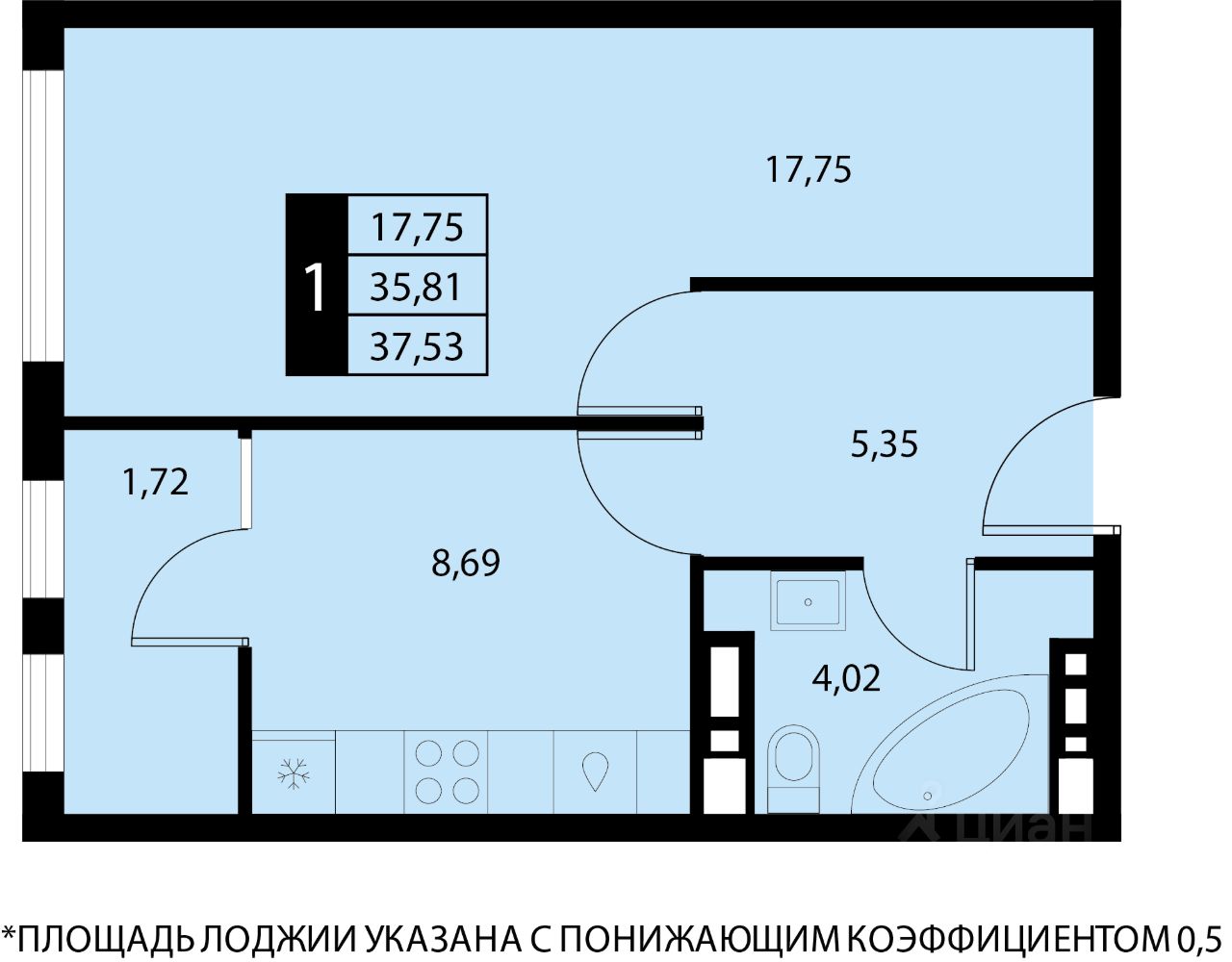 37,53 м²
