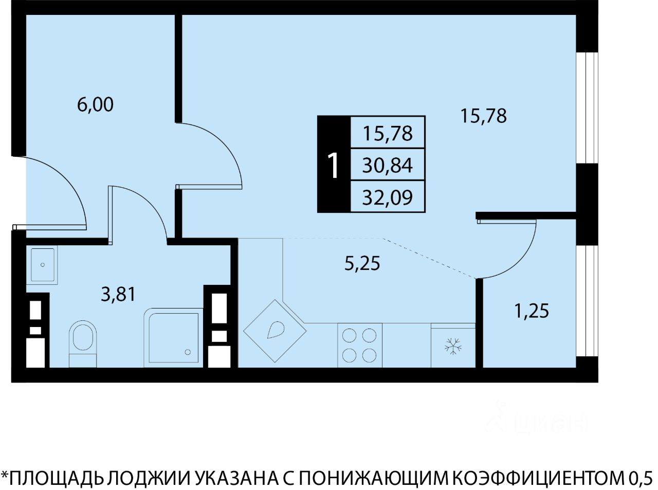32,09 м²