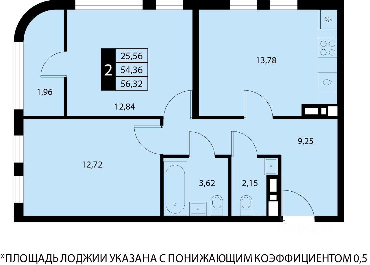 Общая площадь56,32 м²