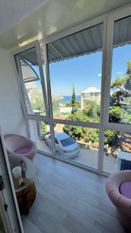 Продаётся уютная 2-комнатная квартира в легендарном курортном посёлке Новый Свет. Всего 450 м до моря — 5 минут пешком, балкон с видом на бухту и горы,,вокруг можжевеловая роща. Подъезд с домофоном.