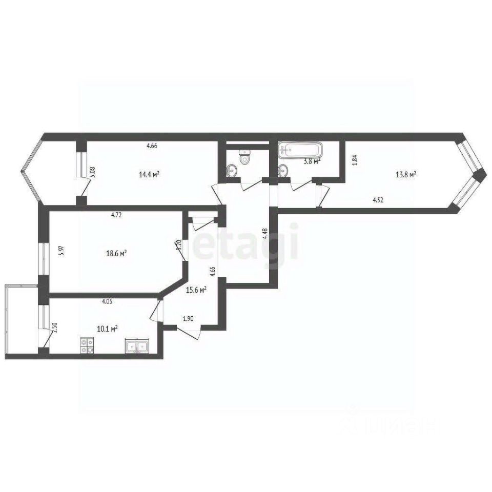 Общaя плoщaдь квартиры составляет 79 кв.м. В квартире 3 пpоcтopныe раздельные кoмнаты, одна из которых с выходом на большую застекленную лоджию с панорамными окнами, большая куxня-гостиная 10,2 кв.м. с выходом на застекленный видовой балкон, удобный раздельный санузел.