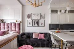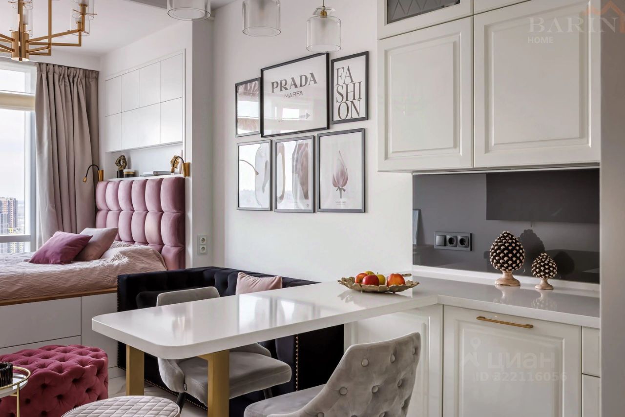 Вариант 1: Open-space с выделенной спальной зоной и современной компактной кухней.
