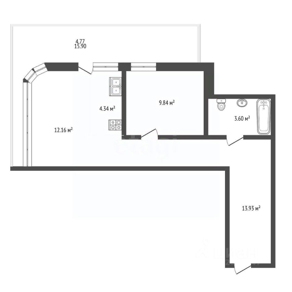 Уникальная квартира с видовым балконом (на море!) площадью 59.77 м²