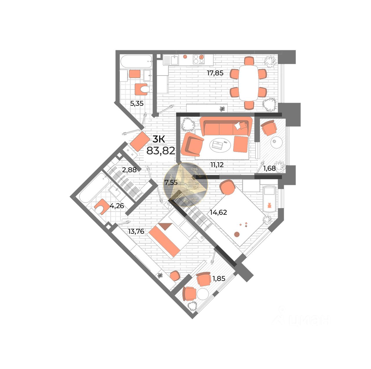 - Светлая спальня 13.76 м2 с отдельным санузлом 4.26 м2