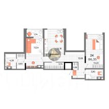 - Мастер спальня 15.54 м2 с отдельным санузлом 4.39 м2 и гардеробной 3.50 м2