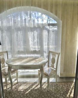 Просторная кухня-гостиная с выходом на застекленный балкон открывает захватывающий вид на сверкающие воды Черного моря — настоящее наслаждение курортной жизни!