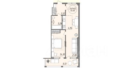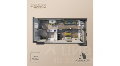 Общая площадь 60 м2.