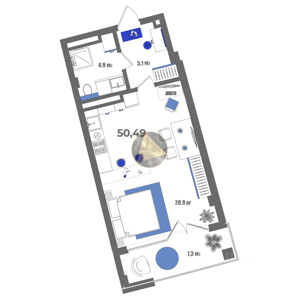 - Совмещённый санузел 4.9 м2