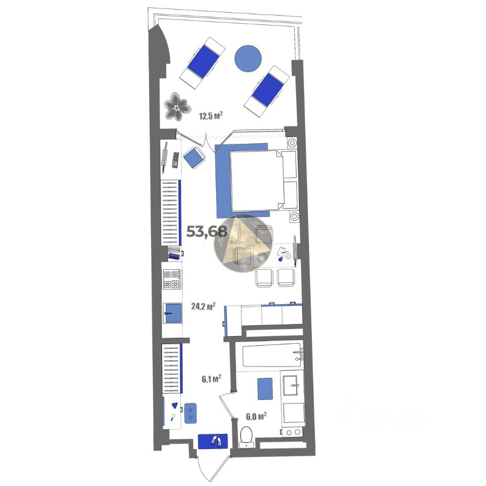 - Общая площадь квартиры 53.68 м2
