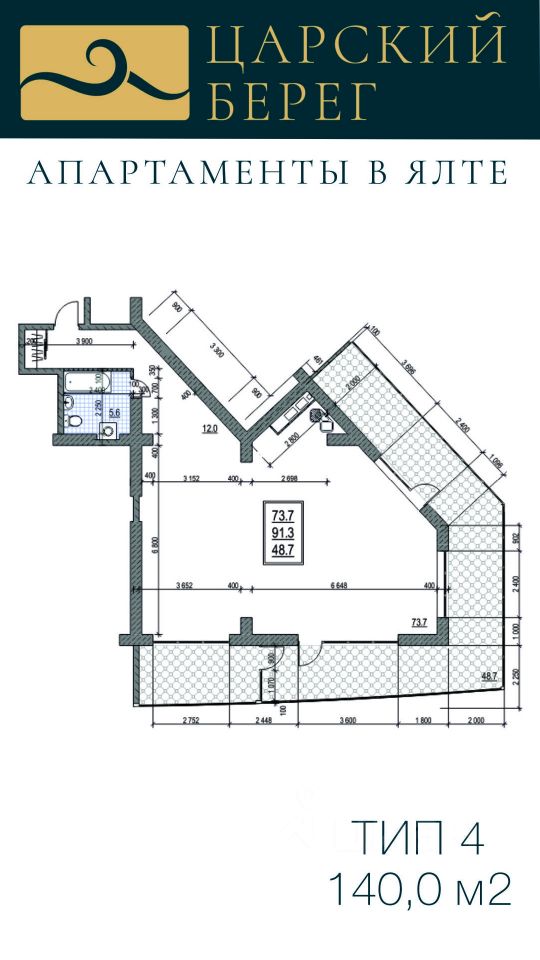 Продаётся студия-апартаменты в строящемся доме (Корпус 1), срок сдачи: I-кв. 2026, общей площадью 140 кв.м., на 3 этаже. Компания "Регион-Инвест Недвижимость" представляет новый комплекс апартаментов "Царский берег" в Крыму. Апарт-отель находится в нескольких десятках метров от знаменитой Царской тропы (Солнечная тропа), по которой император регулярно совершал пешие прогулки. Неподалёку, в Ливадии, располагалась императорская резиденция Романовых, а шикарные дачи российской элиты строились вдоль всего южного берега Крыма. Приобретая апартаменты комплекса "Царский берег", Вы становитесь не только обладателем элитной недвижимости, в Крыму, на берегу Черного моря, но и имеете возможность приобщится к части российской истории. Горы, море, солнце, мягкий климат делают это место идеальным, чтобы связать с ним свою жизнь.