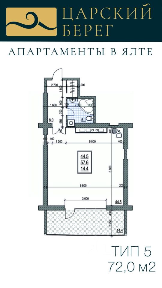 Продаётся студия-апартаменты в строящемся доме (Корпус 1), срок сдачи: I-кв. 2026, общей площадью 72 кв.м., на 3 этаже. Компания "Регион-Инвест Недвижимость" представляет новый комплекс апартаментов "Царский берег" в Крыму. Апарт-отель находится в нескольких десятках метров от знаменитой Царской тропы (Солнечная тропа), по которой император регулярно совершал пешие прогулки. Неподалёку, в Ливадии, располагалась императорская резиденция Романовых, а шикарные дачи российской элиты строились вдоль всего южного берега Крыма. Приобретая апартаменты комплекса "Царский берег", Вы становитесь не только обладателем элитной недвижимости, в Крыму, на берегу Черного моря, но и имеете возможность приобщится к части российской истории. Горы, море, солнце, мягкий климат делают это место идеальным, чтобы связать с ним свою жизнь.