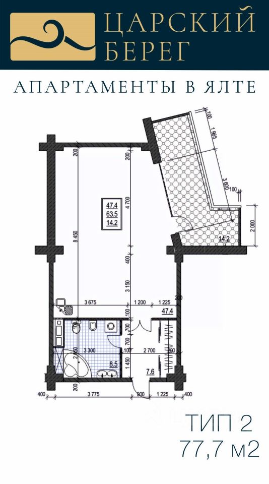 Продаётся студия-апартаменты в строящемся доме (Корпус 1), срок сдачи: I-кв. 2026, общей площадью 77.7 кв.м., на 9 этаже. Компания "Регион-Инвест Недвижимость" представляет новый комплекс апартаментов "Царский берег" в Крыму. Апарт-отель находится в нескольких десятках метров от знаменитой Царской тропы (Солнечная тропа), по которой император регулярно совершал пешие прогулки. Неподалёку, в Ливадии, располагалась императорская резиденция Романовых, а шикарные дачи российской элиты строились вдоль всего южного берега Крыма. Приобретая апартаменты комплекса "Царский берег", Вы становитесь не только обладателем элитной недвижимости, в Крыму, на берегу Черного моря, но и имеете возможность приобщится к части российской истории. Горы, море, солнце, мягкий климат делают это место идеальным, чтобы связать с ним свою жизнь.