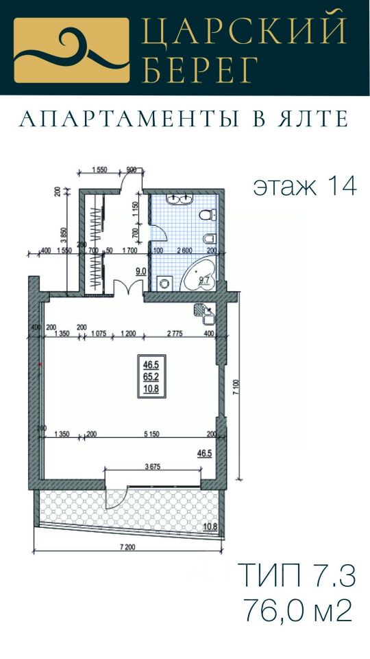 Продаётся студия-апартаменты в строящемся доме (Корпус 1), срок сдачи: I-кв. 2026, общей площадью 76 кв.м., на 14 этаже. Компания "Регион-Инвест Недвижимость" представляет новый комплекс апартаментов "Царский берег" в Крыму. Апарт-отель находится в нескольких десятках метров от знаменитой Царской тропы (Солнечная тропа), по которой император регулярно совершал пешие прогулки. Неподалёку, в Ливадии, располагалась императорская резиденция Романовых, а шикарные дачи российской элиты строились вдоль всего южного берега Крыма. Приобретая апартаменты комплекса "Царский берег", Вы становитесь не только обладателем элитной недвижимости, в Крыму, на берегу Черного моря, но и имеете возможность приобщится к части российской истории. Горы, море, солнце, мягкий климат делают это место идеальным, чтобы связать с ним свою жизнь.