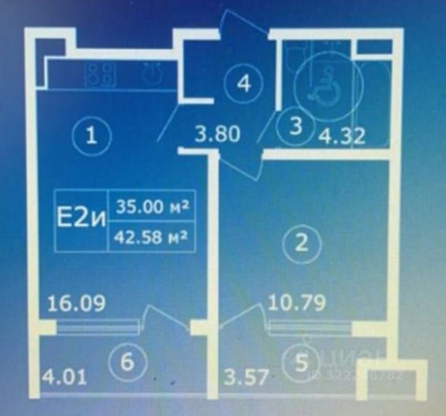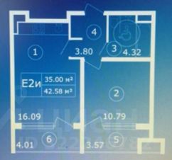 - Общая площадь 42.58 кв.м