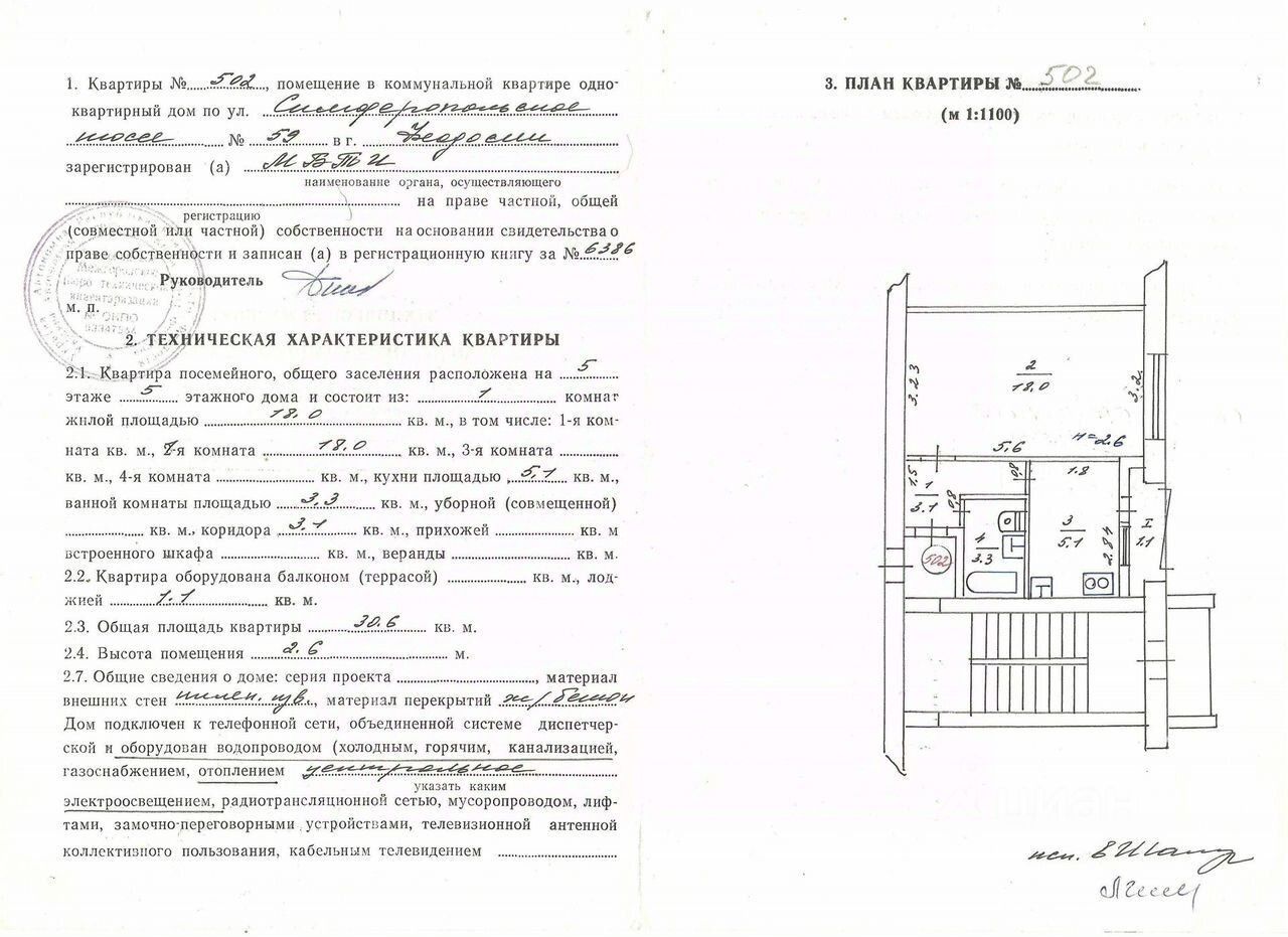 Коммуникации: центральные свет, водоснабжение, отопление, дом не газифицирован, санузел совмещенный, кондиционер, небольшая застекленная лоджия, закрытый тамбур для двух квартир.