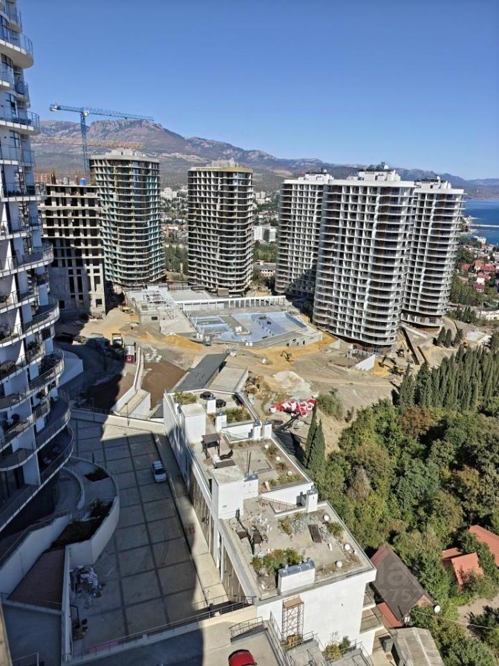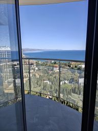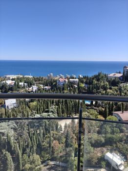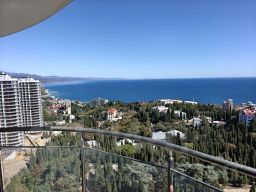 Апартаменты находятся на 9 этаже 16-этажной башни бизнес-класса ЖК Крымская Резиденция с изысканным архитектурным решением. Панорамное остекление сделано не только в гостиной и спальне, но и перила большого балкона имеют прозрачные вставки из безопасного стекла триплекс. Шикарный вид на набережную и на море. В одноподьездном здании на первом этаже располагается кафе и продуктовый магазин. На минус первом и минус втором этажах находятся парковочные места и индивидуальные кладовые (тоже продается!) это очень удобно для проживания.