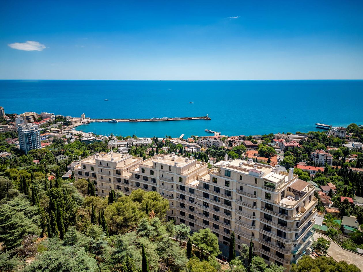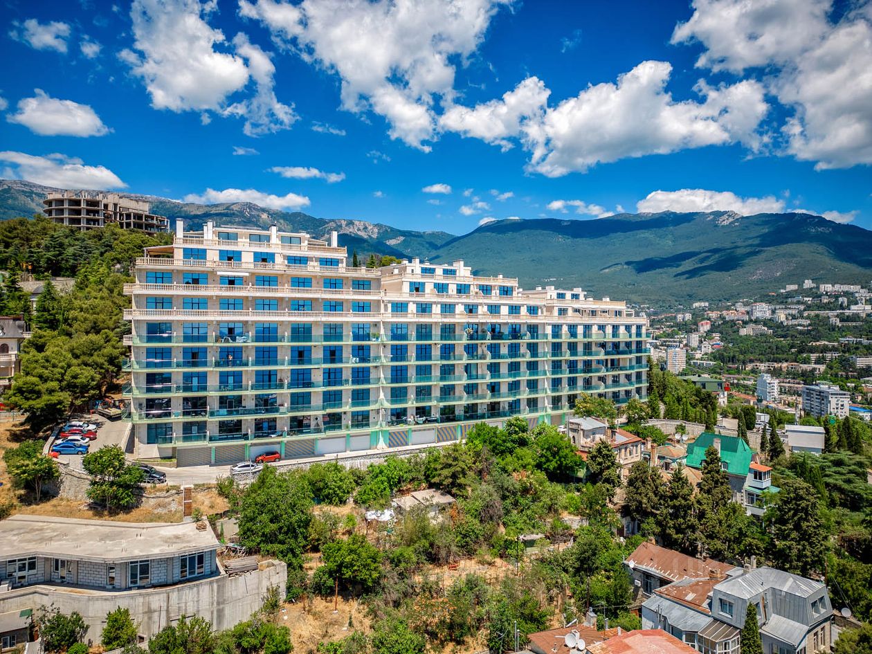 ЖК Аквамарин — новый дом, сданный в эксплуатацию, гармонично вписан в пейзаж благодаря облицовке природным камнем. Комплекс расположен в самом сердце Ялты, рядом с парком на возвышенности, что обеспечивает лучшие панорамные виды города и Чёрного моря.