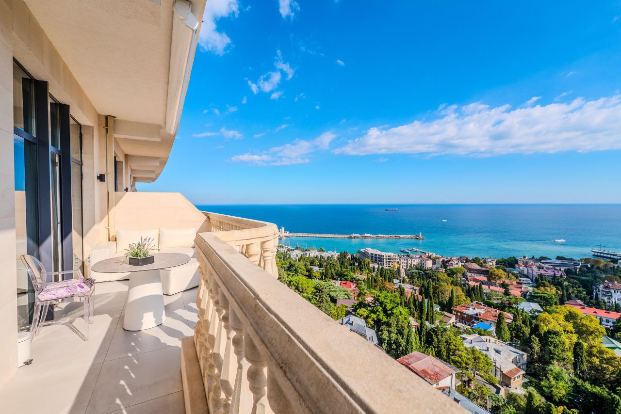 • Общая площадь — 88,3 кв.м, включая большую открытую террасу 18,9 кв.м, с которой открываются завораживающие виды на море, Ялту и горы.
