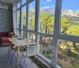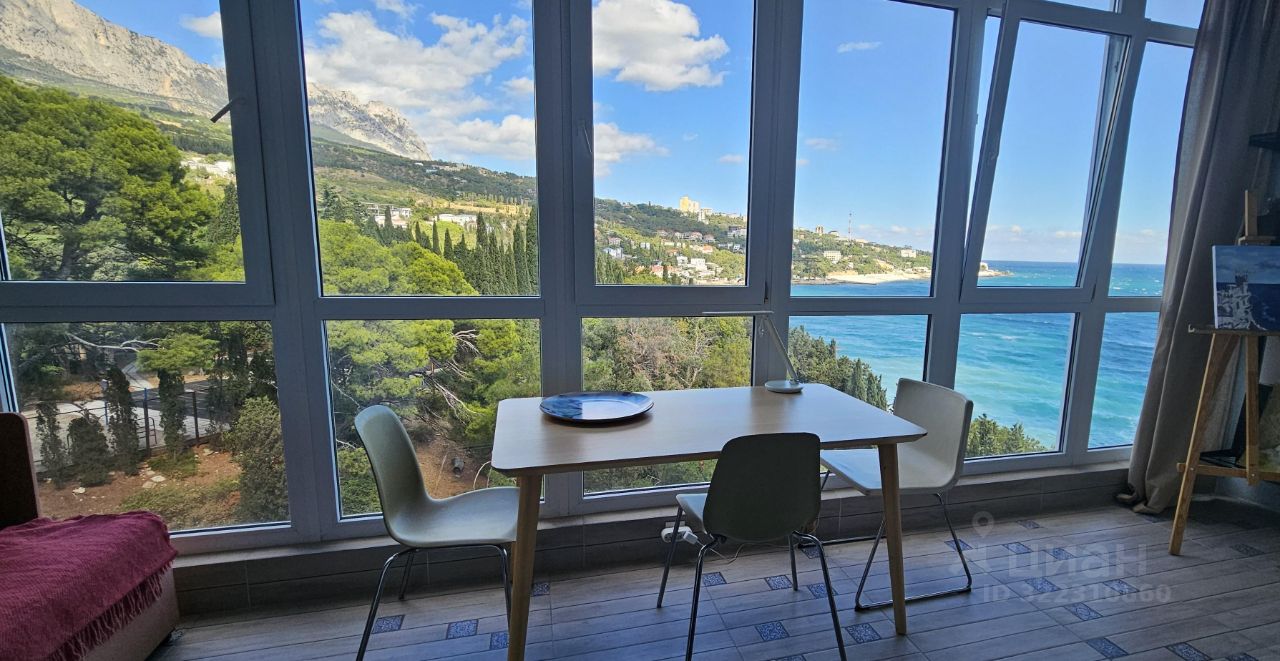 Продаётся очень видовая квартира (с правом прописки) на берегу моря (1 линия), в самом живописном посёлке Ялты - в Симеизе! Квартира на 8 этаже 10-этажного дома, с общей площадью 53м², с качественным ремонтом, с мебелью и техникой! Панорамные окна, вид на море, горы и парк!!! Квартира состоит из кухни-гостиной , двух спален, санузла.