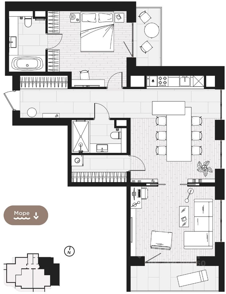 Продаётся 2-комнатная квартира в строящемся доме (Корпус 5), срок сдачи: I-кв. 2026, общей площадью 97.55 кв.м., на 4 этаже. Жилой квартал "Миндаль" расположен в Ялте - природной сокровищнице южного берега Крыма, почти круглогодично залитой солнечным светом. В трёх минутах езды от ялтинской набережной и благоустроенного пляжа. В шаговой доступности - аллея с целебными растениями, потрясающими воображение миндальными деревьями и ялтинским горно-лесным заповедником.