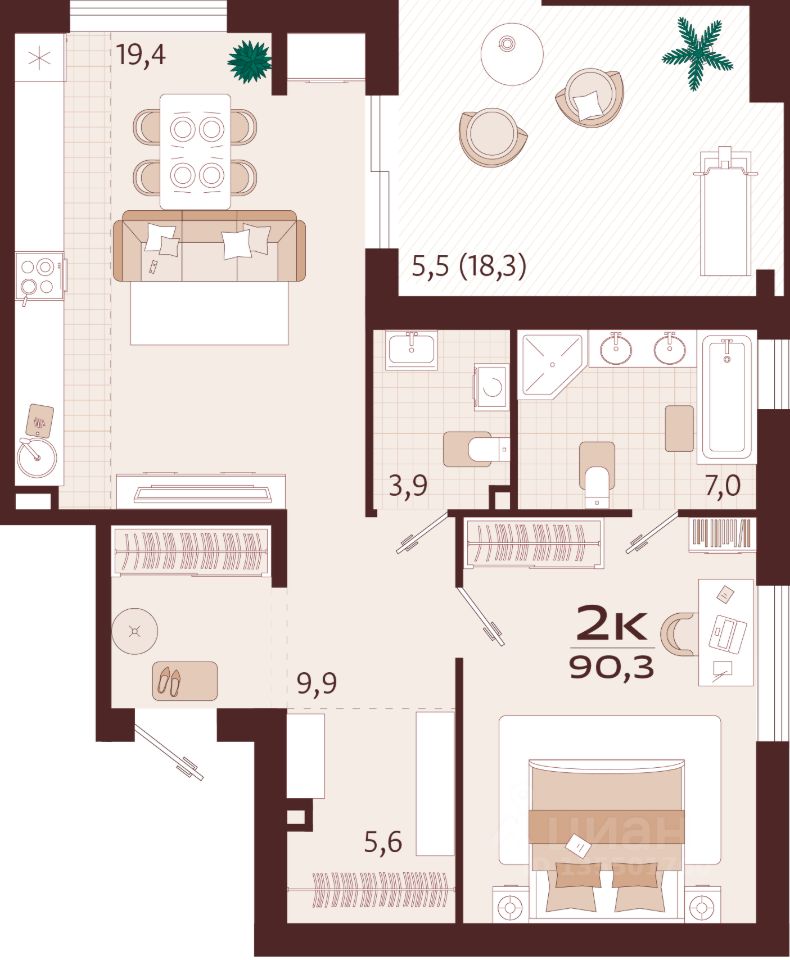 Продаётся 2-комнатная квартира в строящемся доме (Корпус 4), срок сдачи: II-кв. 2027, общей площадью 90.3 кв.м., на 1 этаже. Жилой комплекс бизнес-класса "РОЯЛТА" от застройщика "ГК ТОЧНО" в городе Ялта Республики Крым на улице Спендиарова.