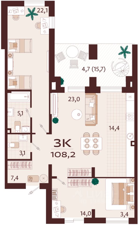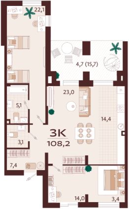 Продаётся 3-комнатная квартира в строящемся доме (Корпус 5), срок сдачи: II-кв. 2027, общей площадью 108.2 кв.м., на 1 этаже. Жилой комплекс бизнес-класса "РОЯЛТА" от застройщика "ГК ТОЧНО" в городе Ялта Республики Крым на улице Спендиарова.