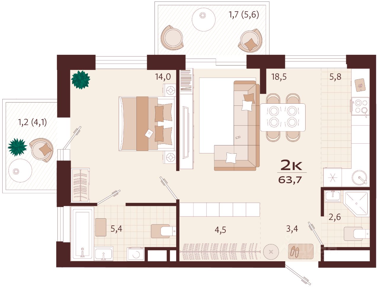 Продаётся 2-комнатная квартира в строящемся доме (Корпус 4), срок сдачи: II-кв. 2027, общей площадью 63.7 кв.м., на 9 этаже. Жилой комплекс бизнес-класса "РОЯЛТА" от застройщика "ГК ТОЧНО" в городе Ялта Республики Крым на улице Спендиарова.
